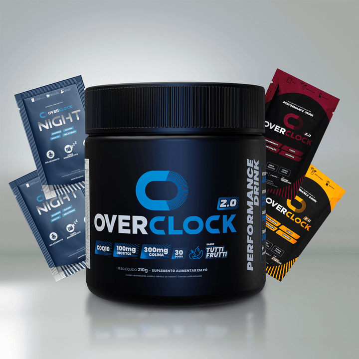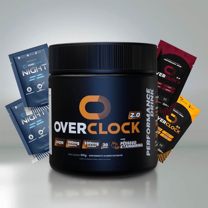 Overclock 2.0 é o aliado ideal para elevar sua produtividade e performance diária. Com uma fórmula exclusiva de ingredientes naturais, como colina, cafeína, Coenzima Q10, polifenóis, tirosina, inositol e vitaminas A, C, D, E e do complexo B, promove foco prolongado, concentração contínua e energia estável, sem causar agitação. Deve ser consumido 15 minutos antes de trabalho, estudos ou esportes, até 3 vezes ao dia. Seguro e natural, seu uso recorrente contribui para memória, imunidade e saúde celular.